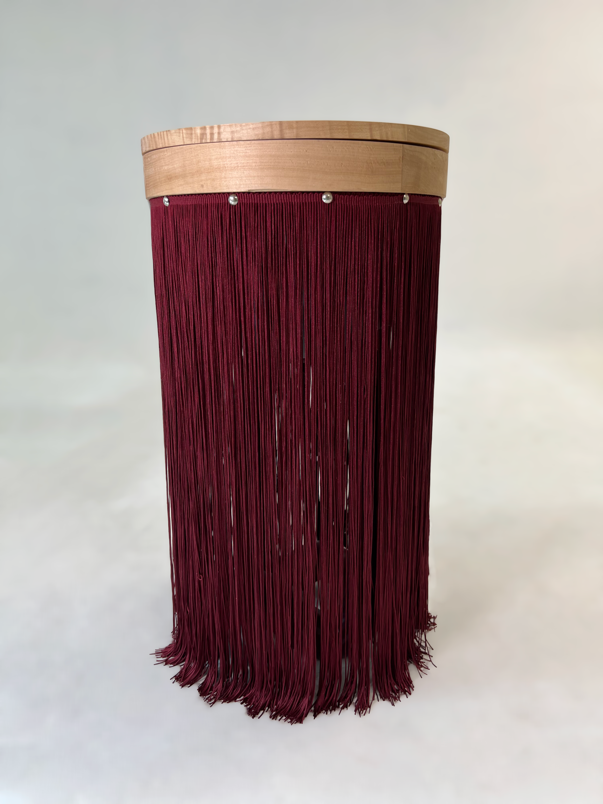 Permeability: The design explored how something as personal as a nightstand can have layers made for both private and public realms. The aspect of permeability is focused on to create intimate moments that are not visually accessible at first glance. This creates a separation between the outward public appearance and the private moments that only those invited to touch the object could find; such as peaking behind the fringe or pivoting the tabletop.
